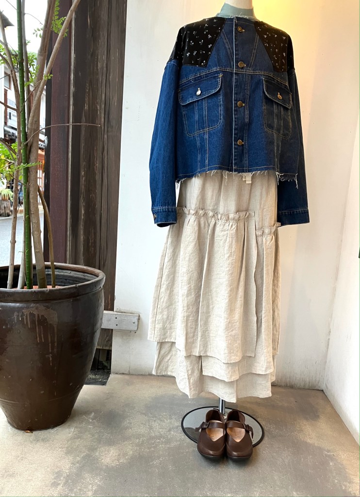 10月4日 陽 10月 4, 2025 ~ atelierbyou ラリアムー:ジャケット デニール:ブラウス デニール:ハイネックシリーズ バスコ:バンドカラーブラウス トリッペン:シューズ デニール:ブラウス