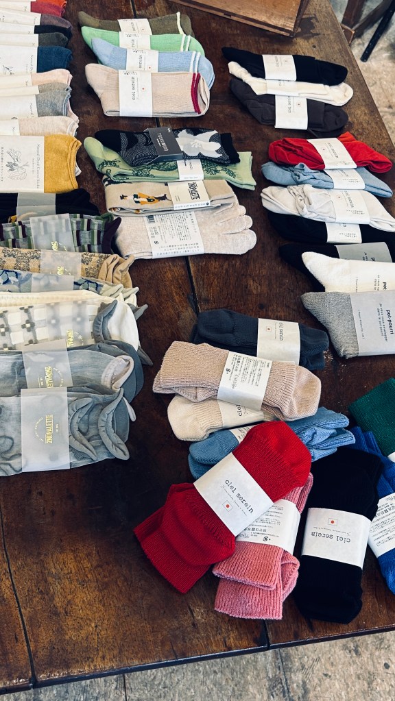 陽 4月 13, 2026 ~ atelierbyou 可愛い靴下達たくさん入荷しました。 綿100%でしっかり伸びてフィット感抜群。 差し色に可愛いですね。 他にも透けるものなどいっぱい。 1650円から〜。 MIYACOリネンのベスト。 ちゃんと感もあって素敵です。 こんなデニムのバッグも。A4サイズの大きさです。 共有: X で共有 (新しいウィンドウで開きます) X Facebook で共有 (新しいウィンドウで開きます) Facebook いいね 読み込み中…