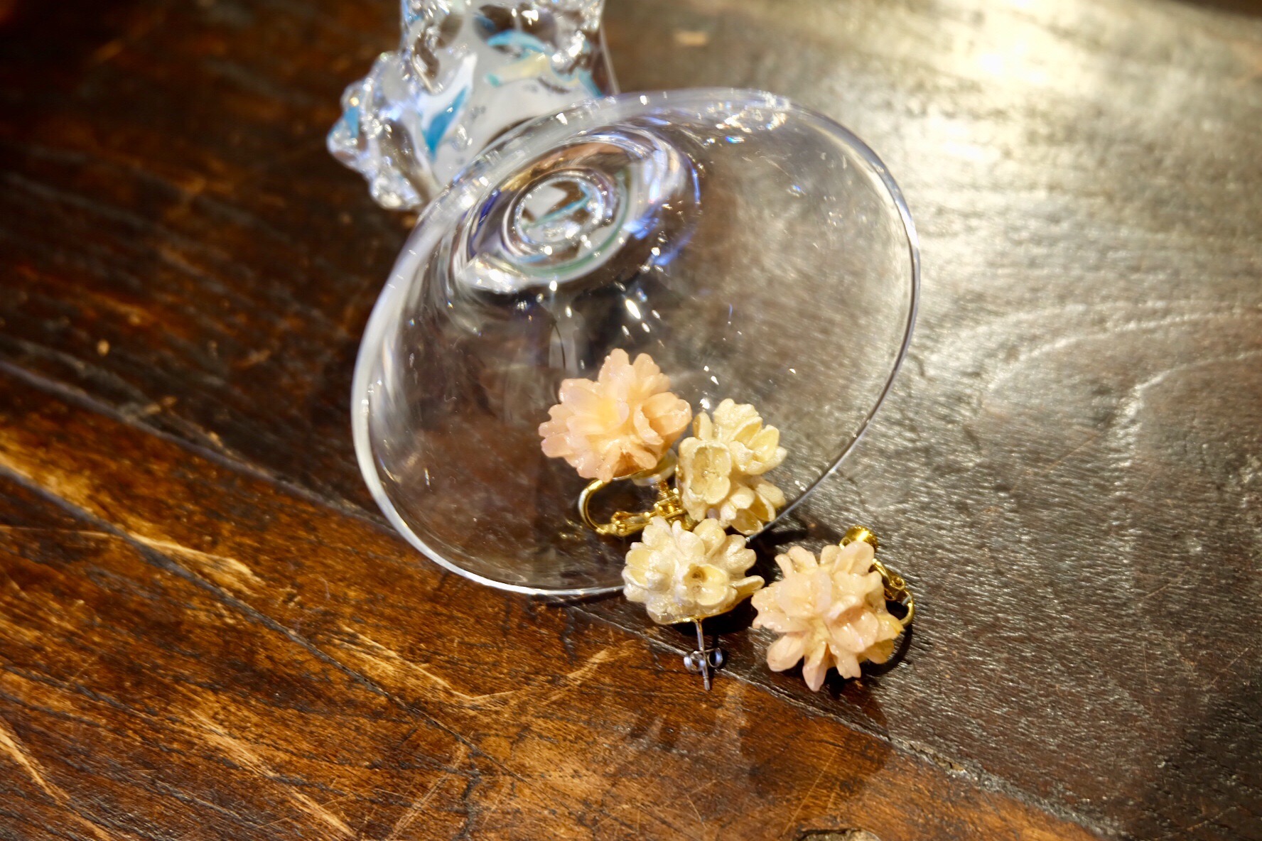 フラワーコーンを使ったピアスとイヤリング‼︎