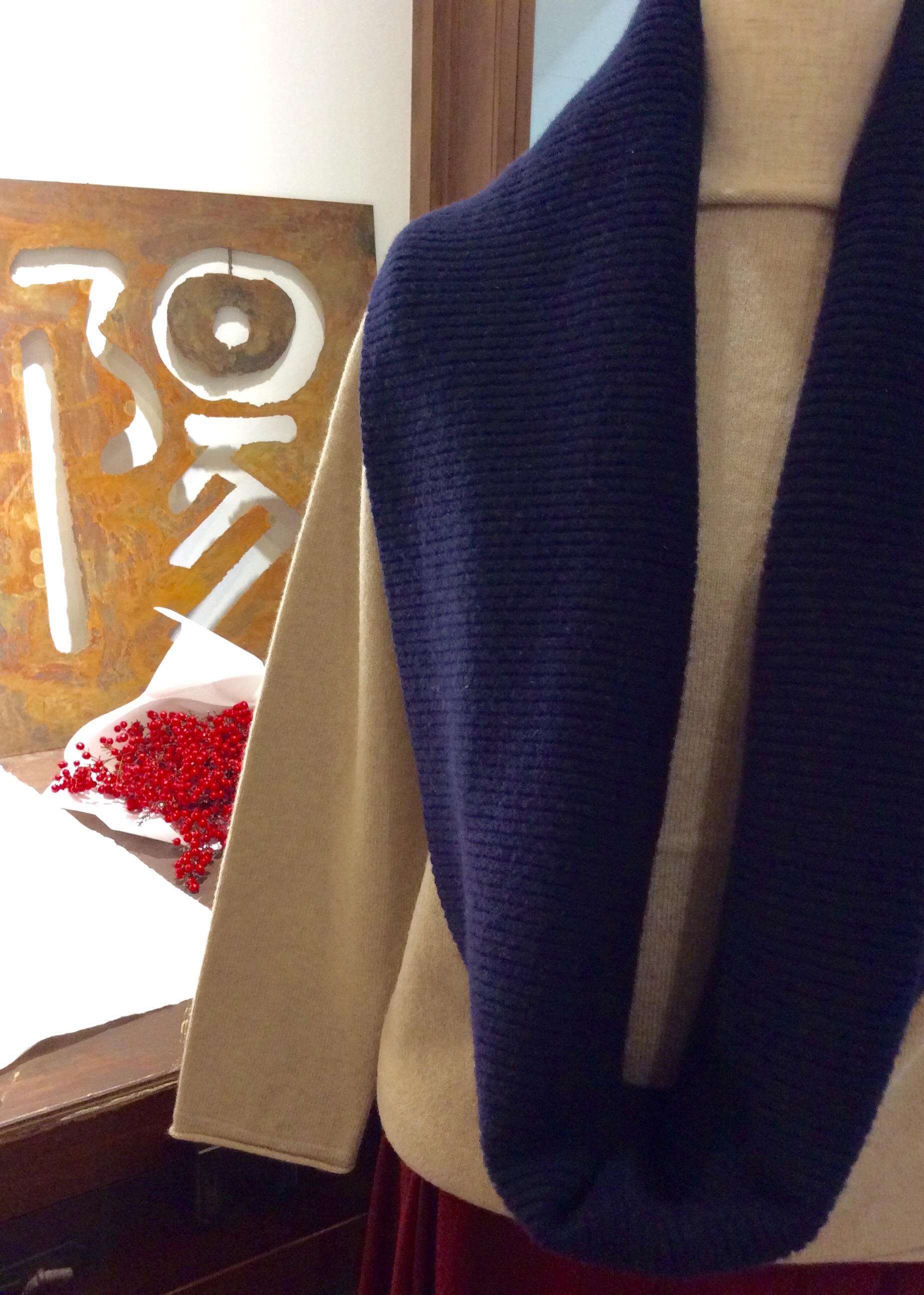 セーターの衿元から白が見えるだけで