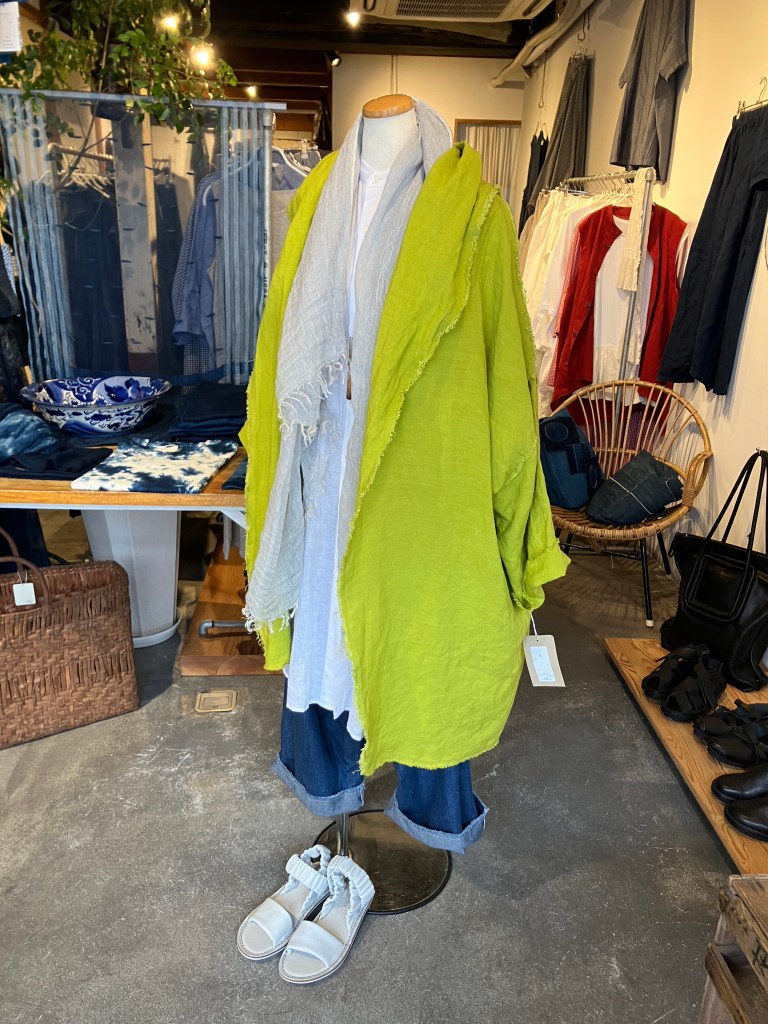 少し肌寒いですが麻素材のコート やストール でおしゃれに出掛けませんか